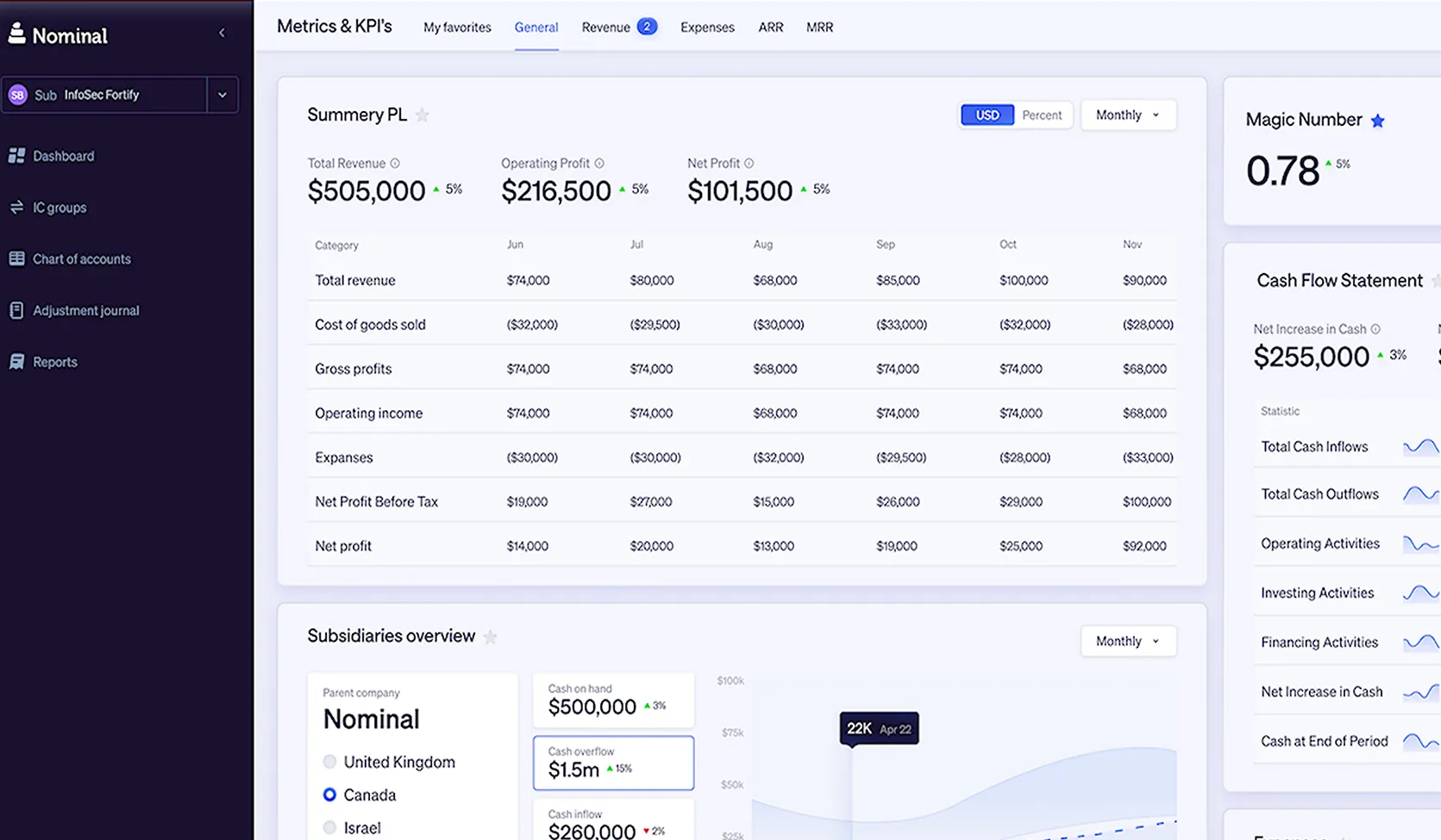 Nominal is ERP-agnostic and works with any existing system - SAP, Oracle, NetSuite, QuickBooks, Sage, Microsoft Dynamics, and many others. Our platform sits on top of your current ERP without requiring migrations or system replacements.