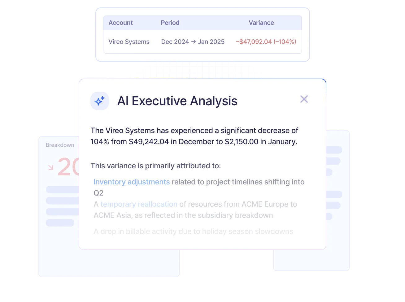 Nominal's AI agents are specialized AI workers that handle specific finance tasks like reconciliations, analysis, and reporting. They learn from your processes, understand context, and execute tasks automatically without human intervention while maintaining complete audit trails.